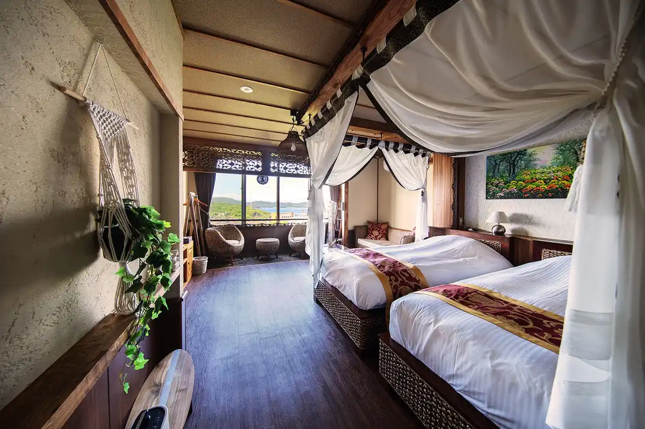 海のパノラマを一望するアジアンテイストの癒し空間(ツインルーム) |