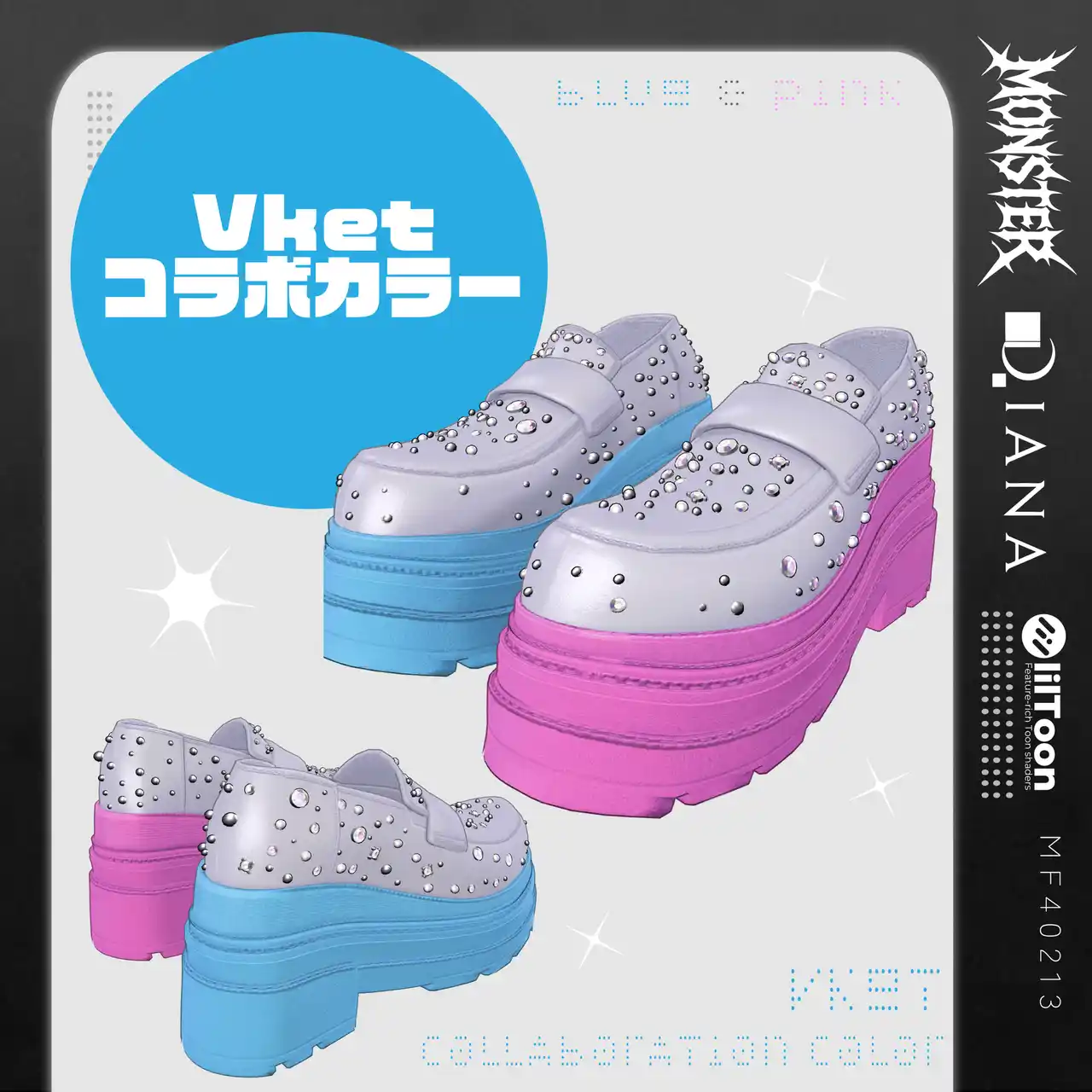 | Vketちゃんをイメージしたカラーの靴を履いて、バーチャルマーケット2025 Winterにお出かけして素敵な写真を撮ってきてください♪ | ||||||||||||||