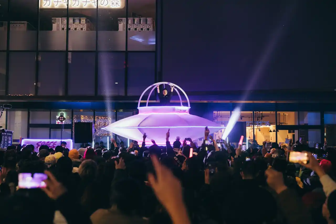 コンテンツ: ・UFO型DJブースが来鹿 ・年越しカウントダウンDJプレイ ・鏡開き&焼酎振る舞い and more |