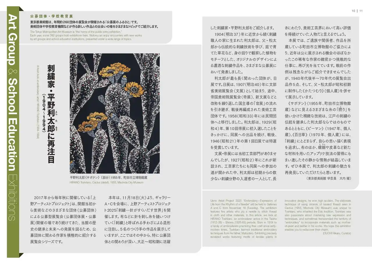 | “公募団体・学校教育展”のページでは、公募団体に関わる作家を積極的に紹介する展覧会シリーズ、上野アーティストプロジェクトから「刺繍―針がすくいだす世界」をご紹介。本展は、東京都美術館ギャラリーA、Cを会場に2026年1月8日まで開催中です。 | |||||||||||||