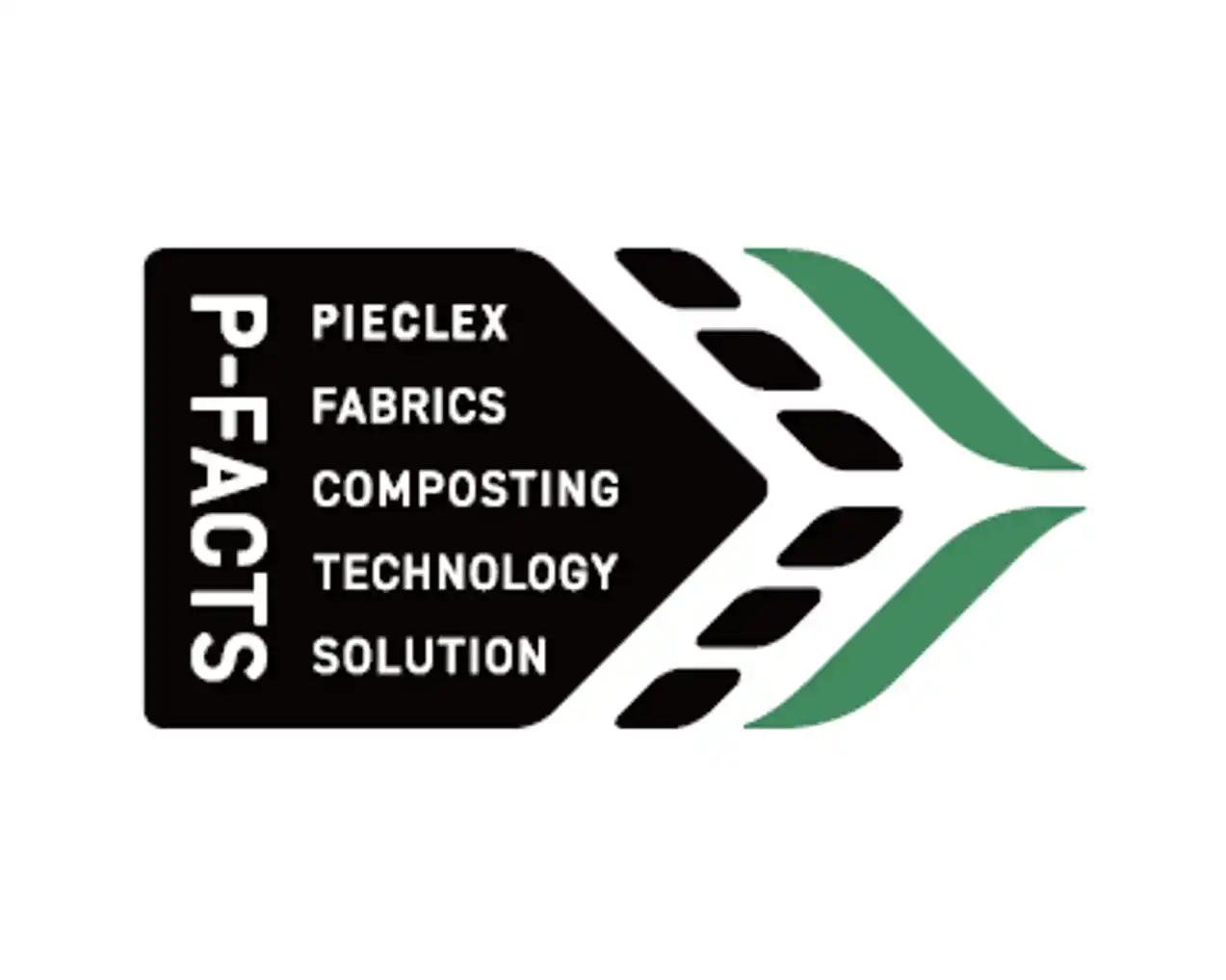 P-FACTS 認証マーク:繊維が堆肥となり、新たな植物が芽吹く様子をデザインしています。 |