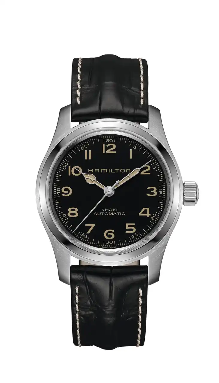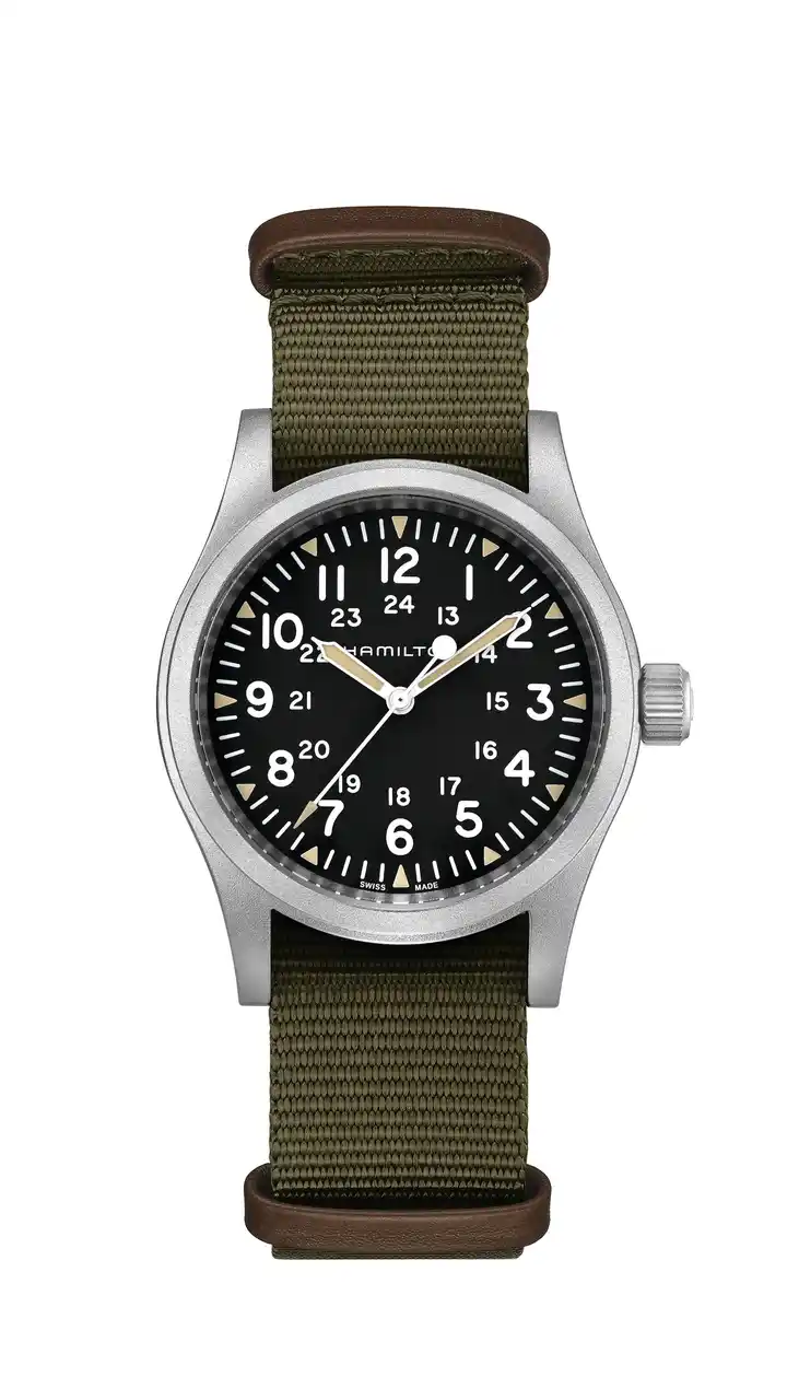 アウトドアを愛する冒険家にもってこいなモデルは「カーキ フィールド メカ」。ブラックダイヤルとラギッドなグリーンのNATOストラップを備え、ハミルトンのミリタリーのDNAを受け継ぐ手巻きモデルです。それゆえ、耐久性を追求し、過酷な環境でも信頼できる設計を実現しています。シンプルで機能的なこのタイムピースは、自然を駆け抜けるあなたの究極のパートナーとなります。 |