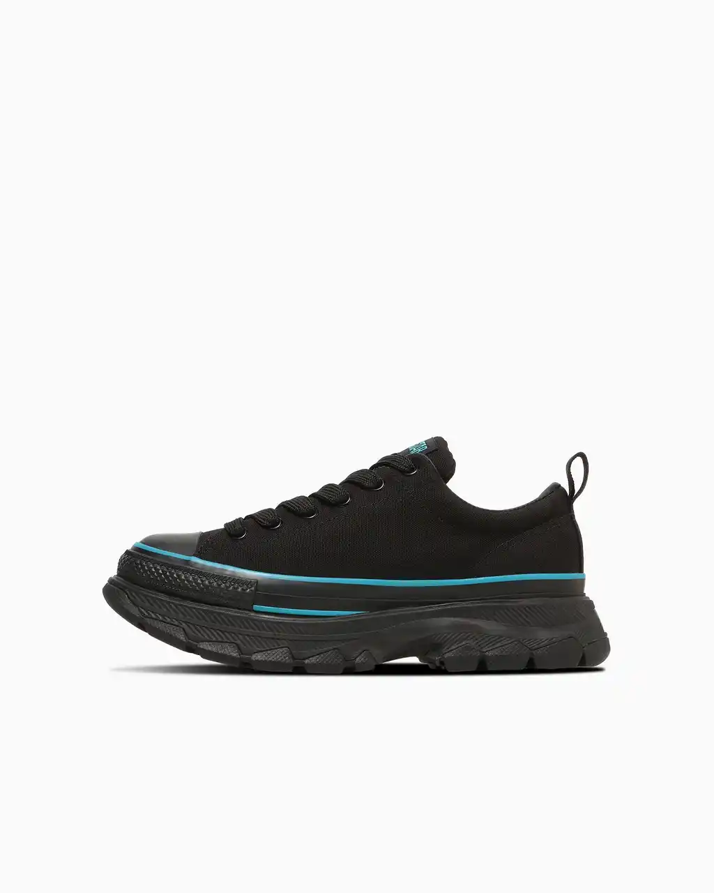 | ストリートムード漂う「ALL STAR TREKWAVE AP OX」は、厚めの履き口パッドとファットシューレースでボリューム感を演出。オールブラックに差し色を効かせたデザインに仕上げた“AP(ANKLE PAD)”仕様です。どちらも軽量なPUフォームとE.V.A.ミッドソールにより、クッション性と快適さを両立しました。 | ||||||||||||||