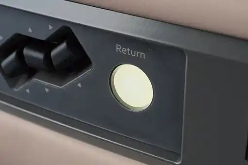 ボタンひとつで初期のポジションに戻るオートリターンスイッチ。電源を入れるとLEDライトが優しく点灯するので、スイッチの位置がわかりやすく、電源のON/OFFもひと目でわかります。 |
