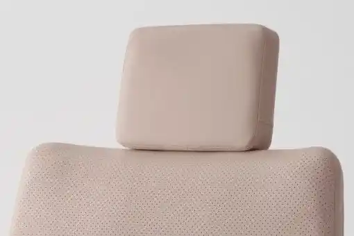 背もたれに差し込むだけで手早くセット可能。お客さまを自然に寝姿勢へと誘導できます。使用しないときはチェア側面にすっきり収まり、空間を |