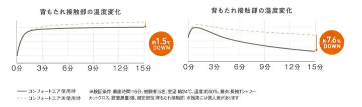*コンフォートエア有無による背もたれ接触部の温度及び湿度計測結果 |