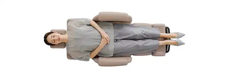 フルフラット機構によりベッドのような寝心地と安定した姿勢を実現。各種シャンプー機器との組み合わせにも柔軟に対応します。 |