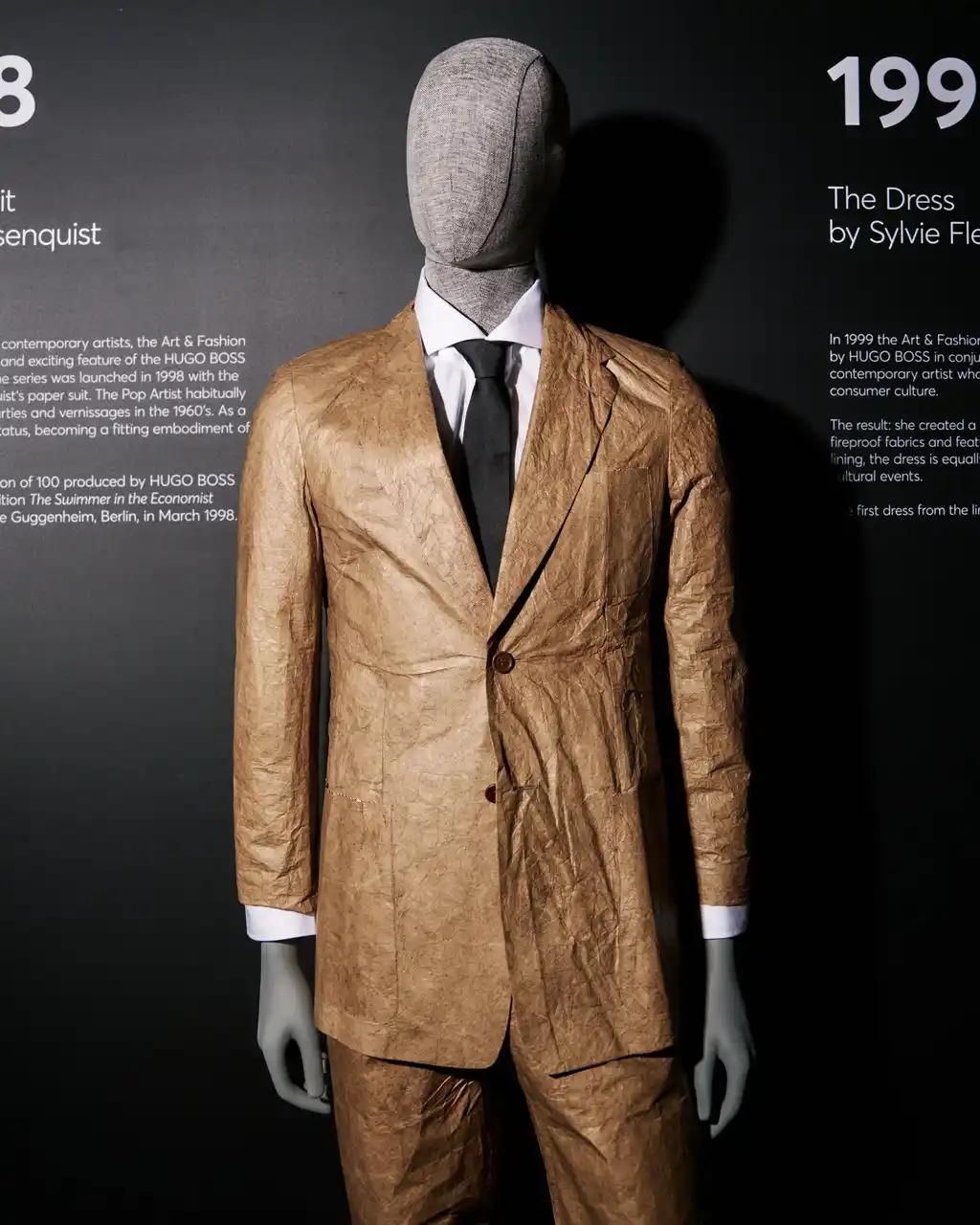 | 式典の中心的な見どころとなったのは、没入型のウォークウェイ・インスタレーション「1995-2025: 30 years of Arts Sponsorship」です。この展示では、過去30年にわたりHUGO BOSSがアートを支援してきた歴史に光を当てました。主なハイライトとして、1998年にアーティストのジェームズ・ローゼンクイストが制作した「Paper Suit」(テーラリングのクラフトマンシップと紙の消費性を融合した作品)、ソロモンR.グッゲンハイム財団・美術館と共同でアーティストに授与してきた長年のHUGO BOSS Prize、そして上海のロックバンド美術館(Rockbund Art Museum)と設立した「HUGO BOSS ASIA ART Award」をクローズアップしました。 | |||