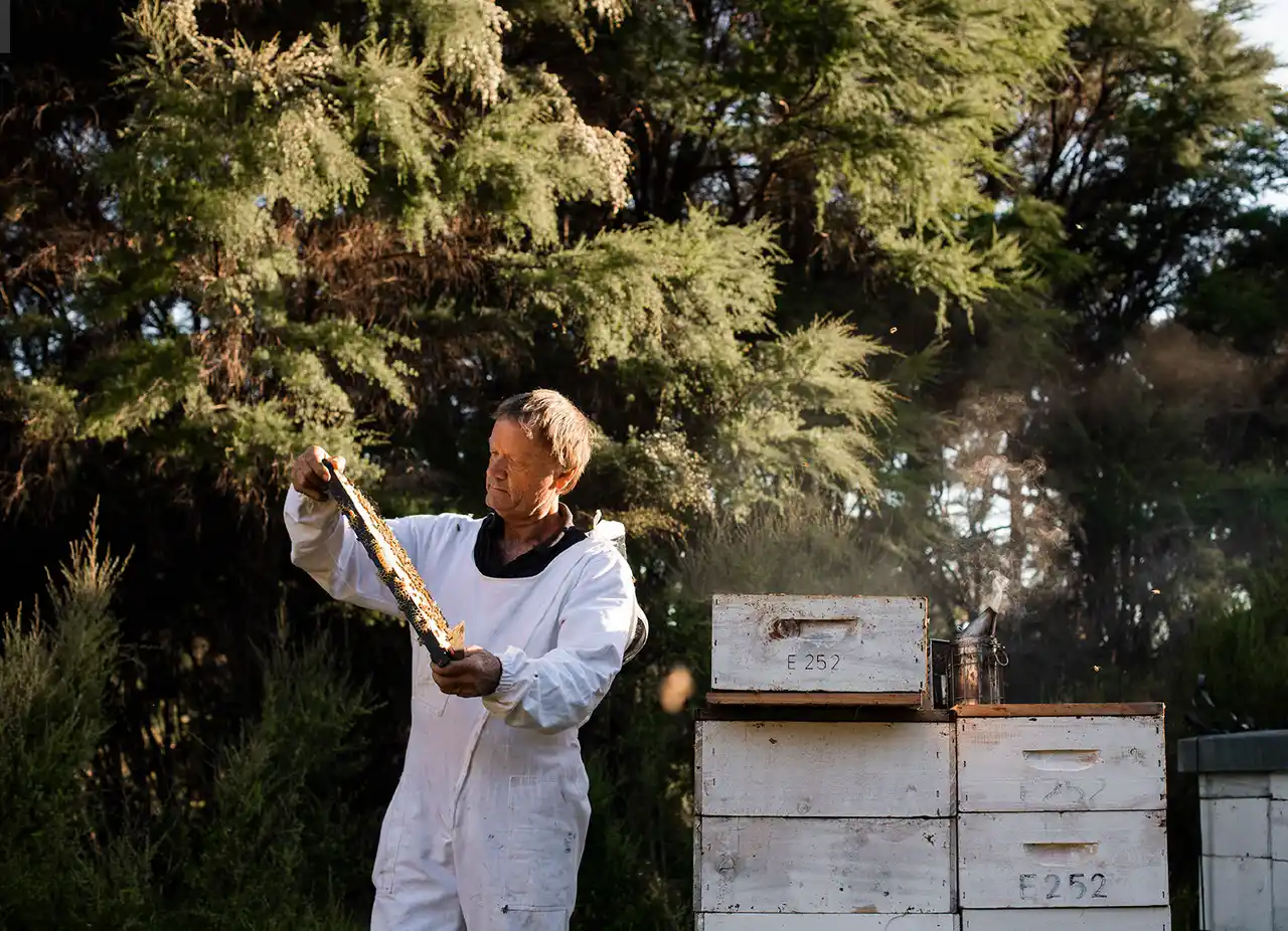 12歳で初めて巣箱を持ち、以来50年以上にわたって養蜂と真摯に向き合ってきました。気候や花の咲き方を読み取り、蜂たちと共に働くその姿勢は、いまやニュージーランド国内でも業界の模範とされています。 |