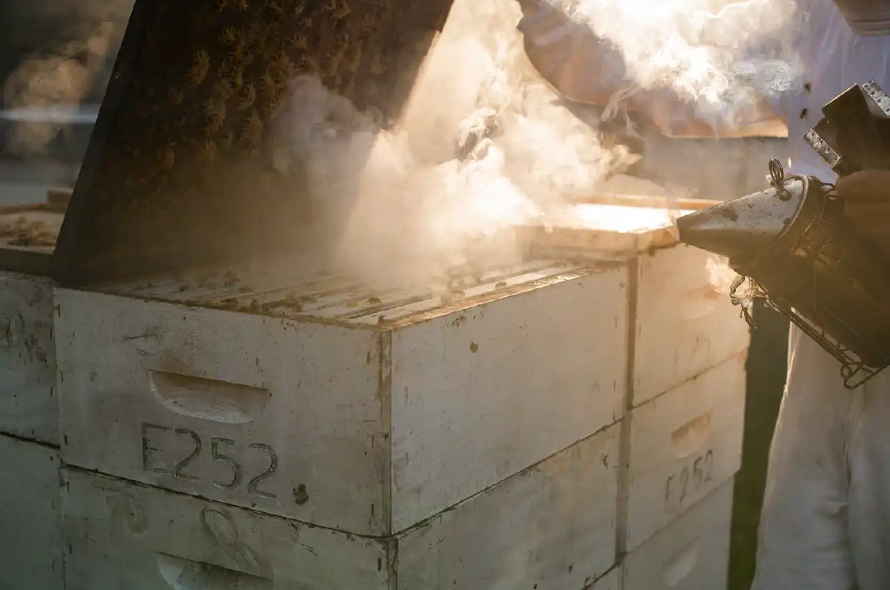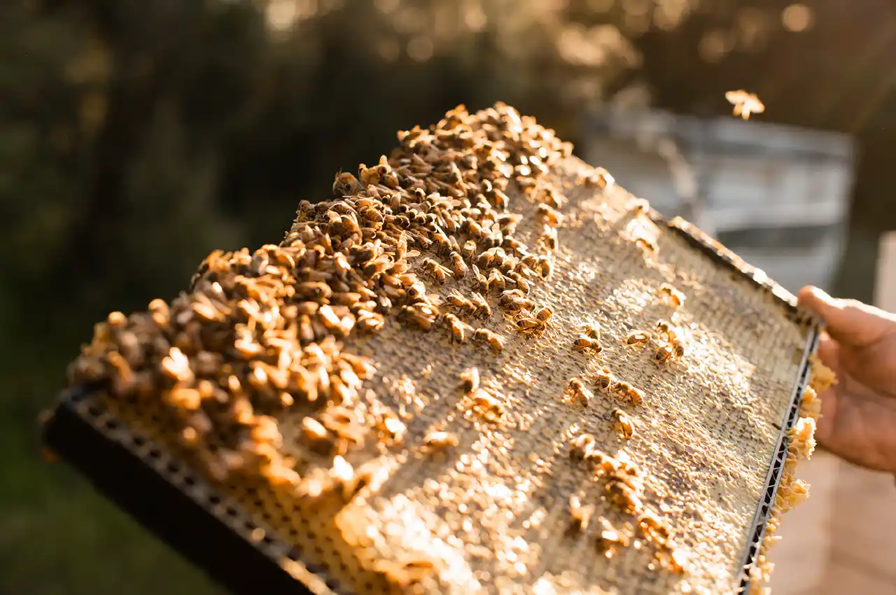 2.採集 - 1年の中で採れる期間が限られているため、適切なタイミングを知り尽くした養蜂家自身が丁寧に採蜜 |