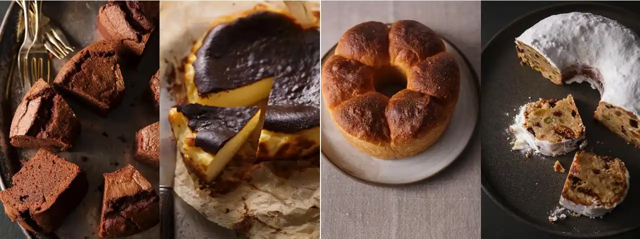 左からガトーショコラ、チーズケーキ、ちぎりパン、シュトーレン |