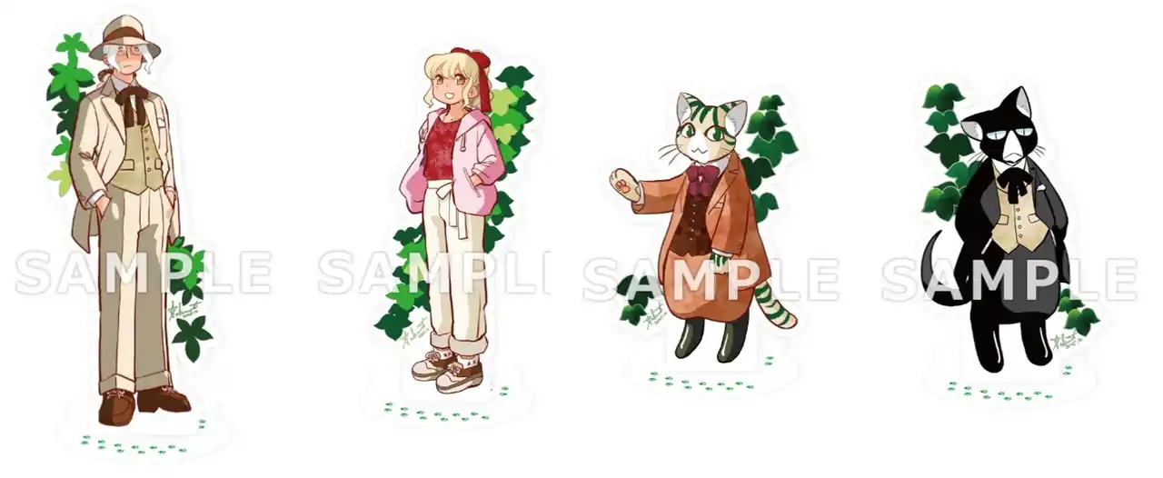 台座はねこの形をしていて、とてもかわいいデザインのアクスタです。ぜひ全員をお迎えください! |