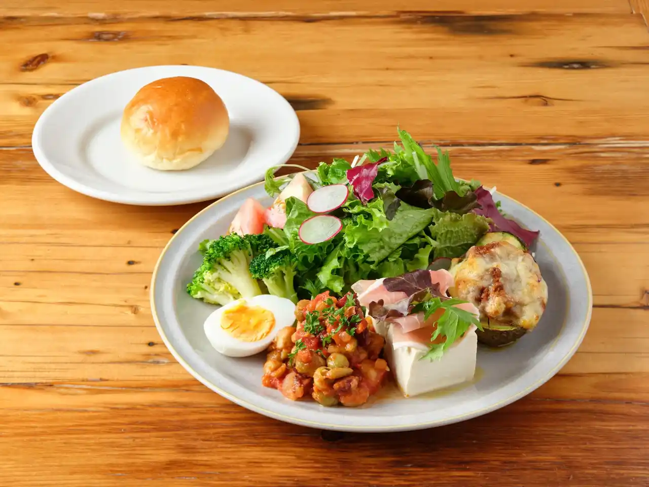 その日の気分で、わたし仕様の一皿に。メインデリ1種+サイドデリ2種を自由に組み合わせられる、人気のカスタムサラダプレート。定番デリから旬の素材を使った季節メニューまで常時数種類をご用意し、“今日はどれにしよう?”と選ぶ過程そのものが楽しい一皿です。プレートにはスープと、ライスまたはパンをセットでご用意。野菜をしっかり食べながら、満足感も得られるバランスの良い構成に仕上げました。今後は、多摩地区の食材も取り入れ、地域に寄り添ったプレートへ進化していく予定です。 |