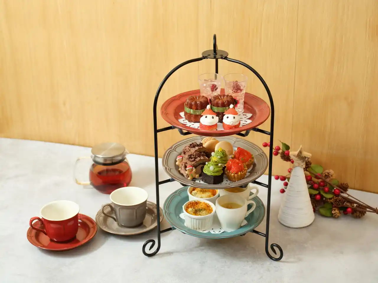 1年のご褒美にぴったりな、ときめく3段スタンド。イチゴのサンタクロースやカヌレ、ミニいちごタルト、マカロンなど、心が弾むクリスマススイーツを可愛らしく盛り込み、セイボリーにはアッシ・パルマンティエとミニスープを添え、甘い・しょっぱいの満足感もしっかり。選べるカフェドリンク付きで、自分へのご褒美や、クリスマスデート、女子会にもおすすめ!ショッピングの合間に“ちょっと贅沢なクリスマス気分”を楽しめる期間限定アフタヌーンティーです。 |