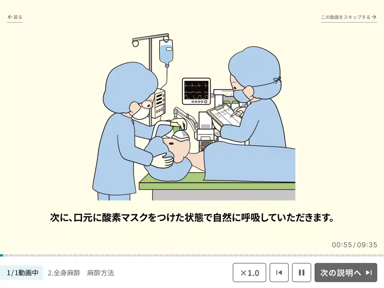 全身麻酔の説明動画の一部 |