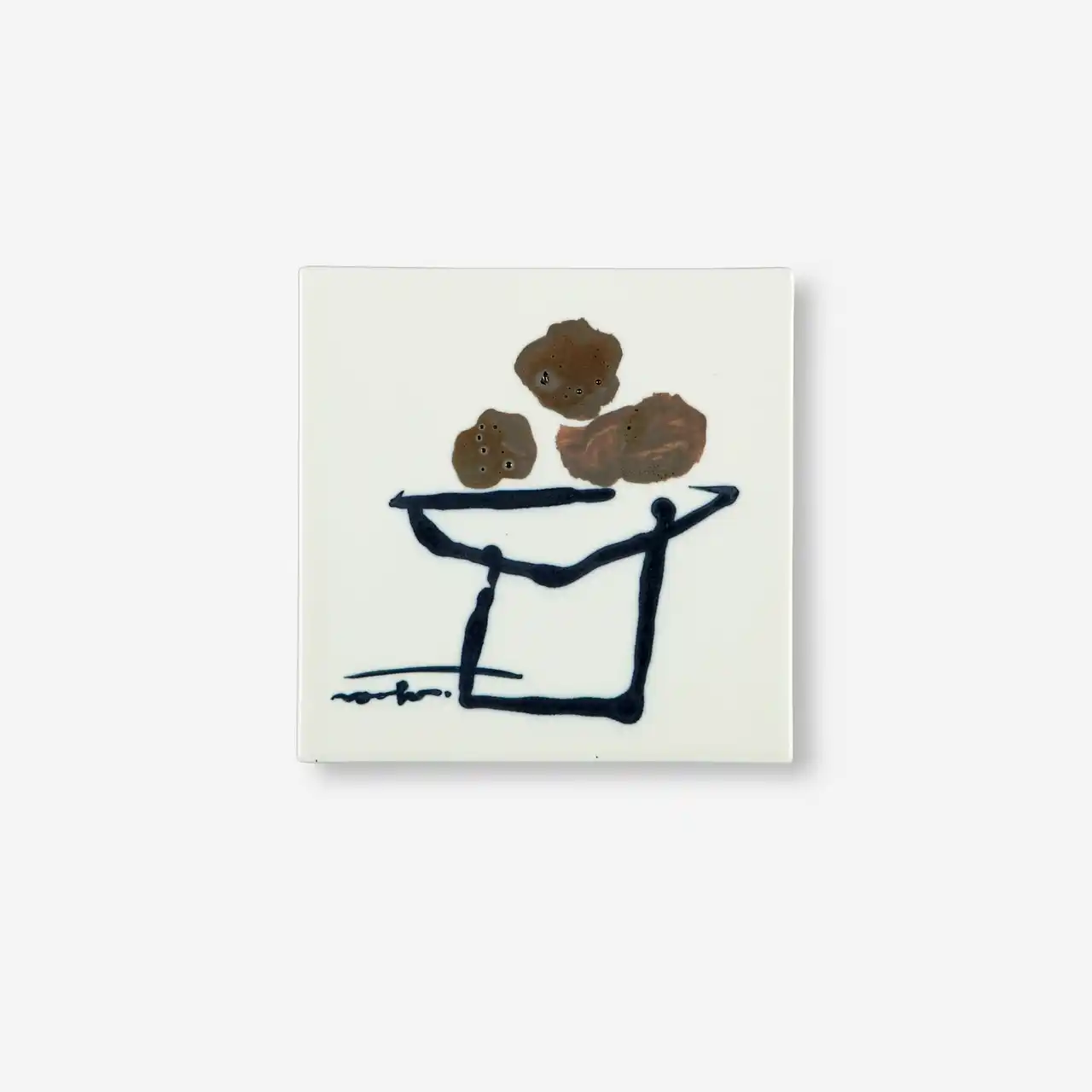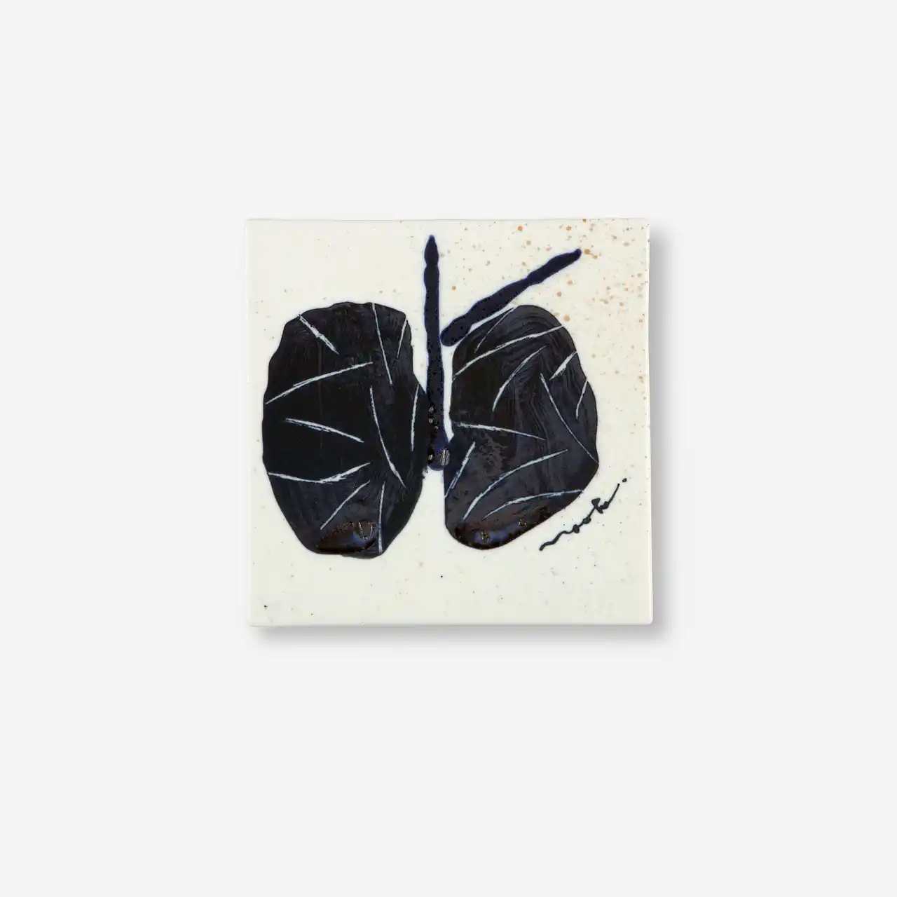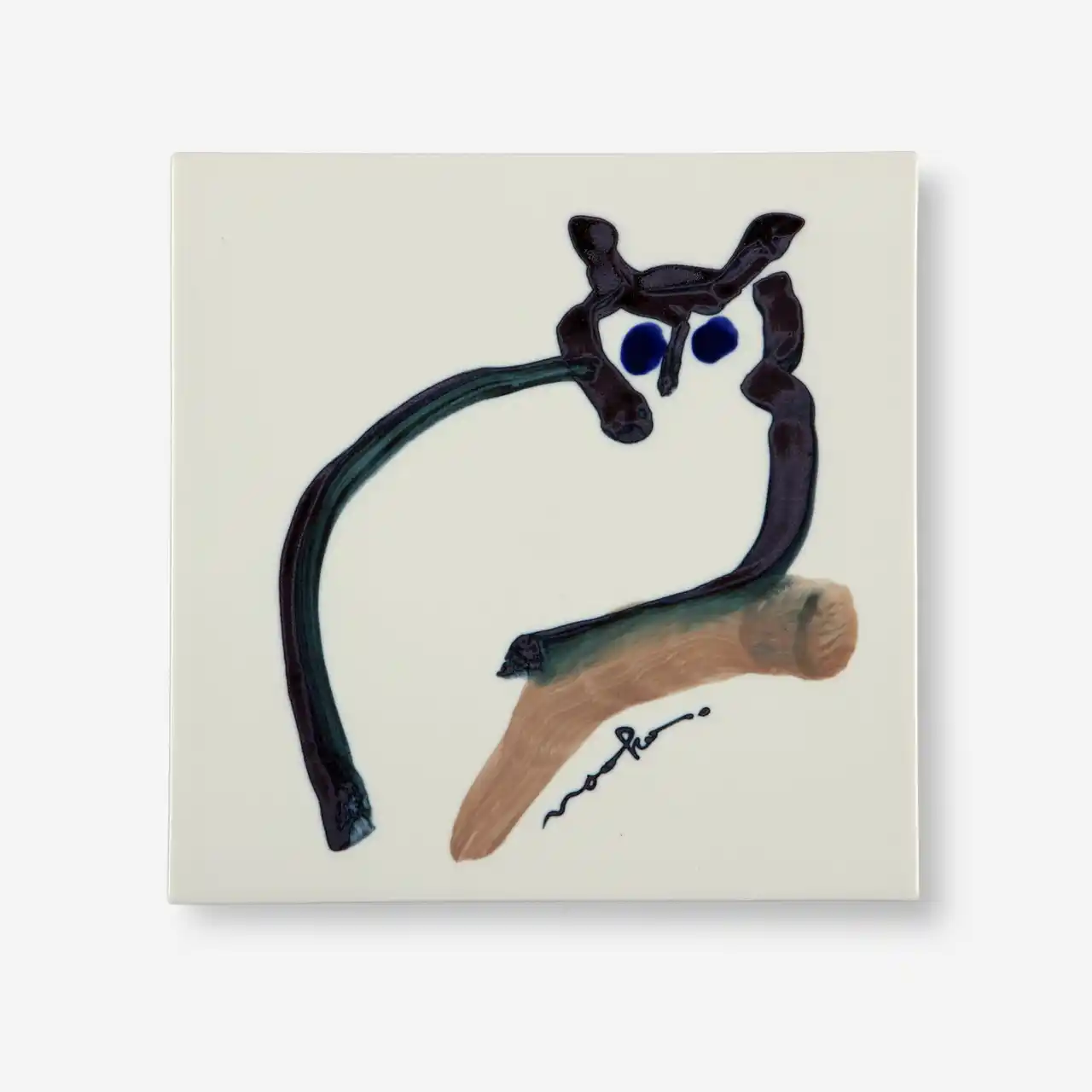 本展では、はしもとなおこが陶板制作に挑戦し、通常の創作で多用する「黒」、「⻘」に、新たに「茶」を加えた3⾊のみで構成する、動物や植物をモチーフとした作品を展示します。異なる釉薬を組み合わせ、瀬戸焼の技法に新たな試みを加えて制作された全40点が並び、釉薬の質感や焼成による⾊の変化が織りなす豊かな表情をお楽しみいただけます。 |