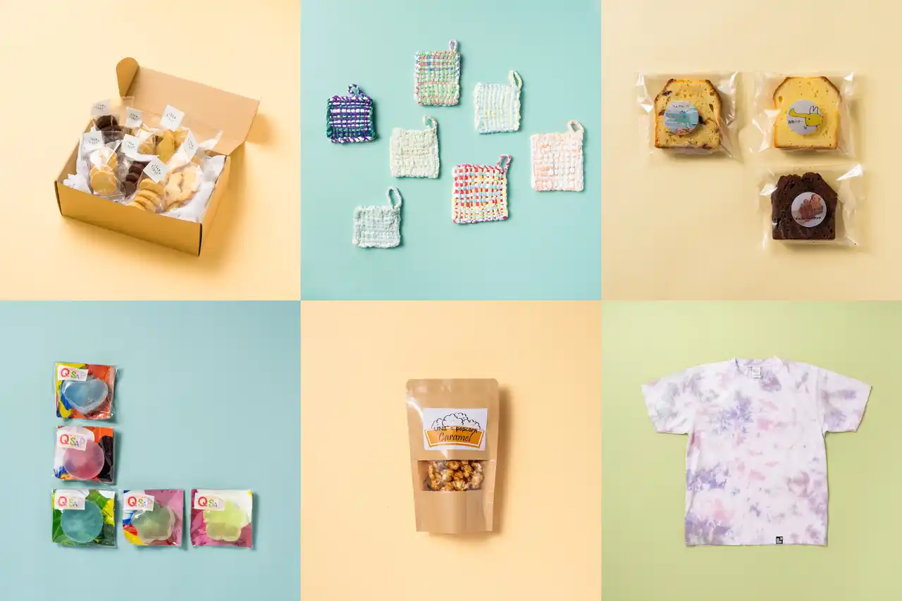 世田谷区内の福祉施設でつくられているプロダクトが多数集まるマーケット。「せせせマルシェ」では、クッキーやパウンドケーキ、手づくりのポップコーンなどの美味しいおやつから、洗剤いらずで環境にやさしい織り雑巾、毎日の暮らしに寄り添う石鹸などの日用品、さらにTシャツやサシェなどの布製品まで、個性豊かなアイテムを多数取り揃えています。また、当日は、〈千歳台福祉園〉による“似顔絵ワークショップ”も開催。 |