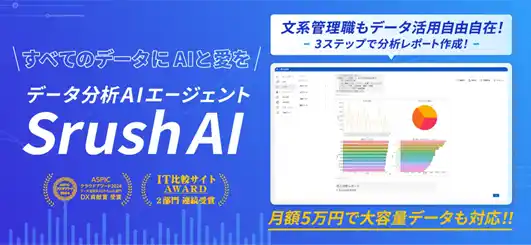 Srushは「データを誰にとっても身近なものにする」を掲げ、Srush AIを軸に、ノーコードでデータを統合・可視化できる「データ統一クラウド」、データ活用を支援する「データ活用伴走サポート」、データを自在に操る人材を排出する「データ人材育成プログラム」の3つを展開しています。2025年4月には福岡に九州支社を開設し、地域の中堅・中小企業への支援を本格化しています。 |