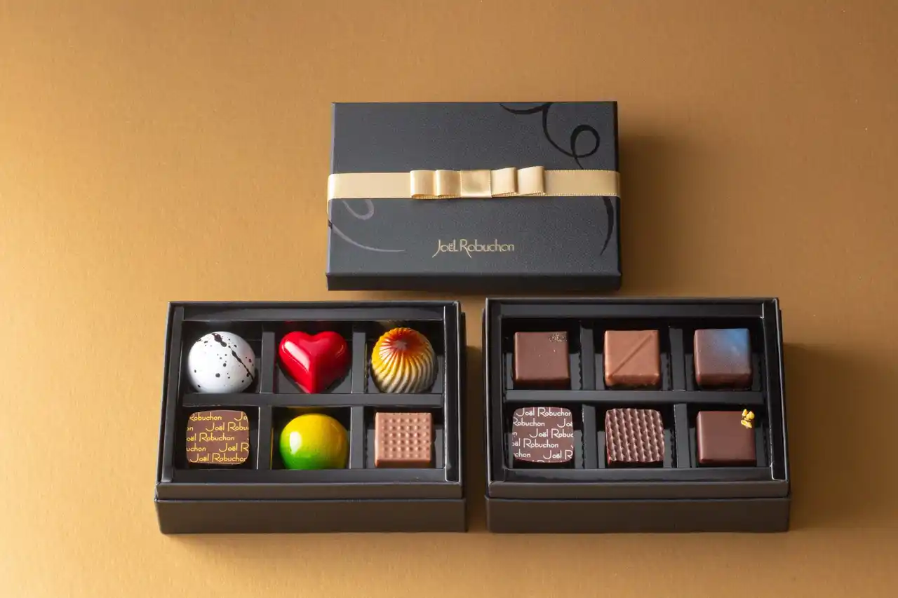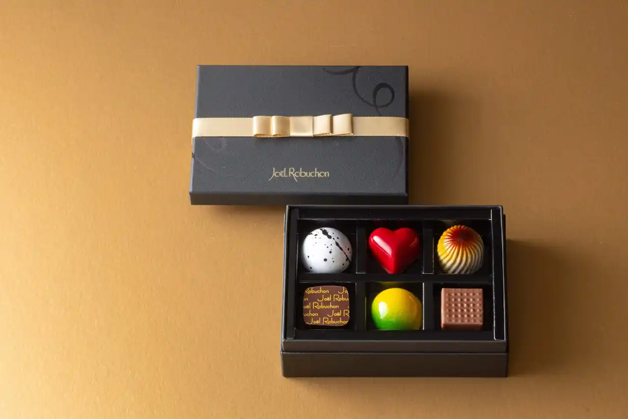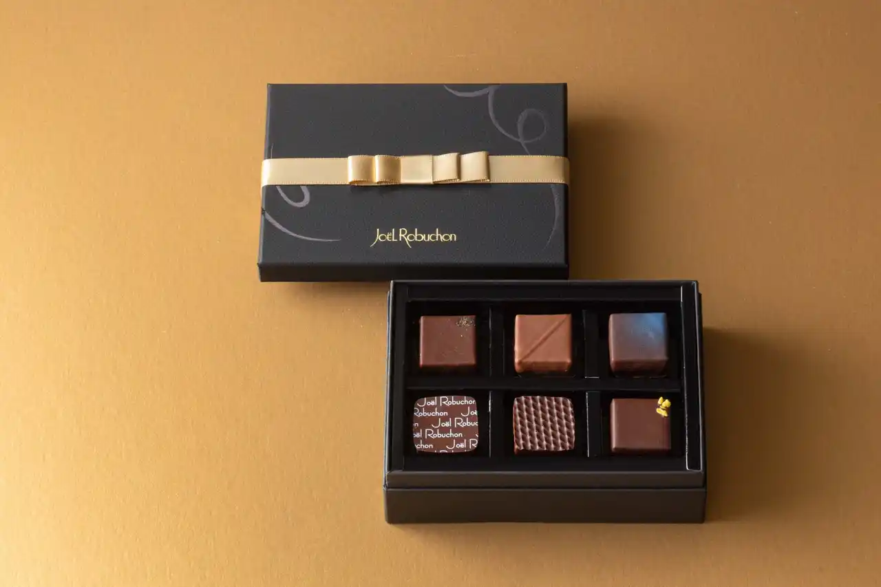 『ミシュランガイド東京2026』にて最高評価である三つ星に19年連続で選ばれた、ガストロノミー“ジョエル・ロブション”の食後の小菓子として 提供しているショコラを特別に詰め合わせた「ボンボンショコラ シャトー」を販売いたします。今年の新フレーバー「カフェ ミュール(カフェ&ブラックベリー)」を含めた全6種を詰合せました。職人が一つ一つ丁寧に作り上げる、奥深い味わいは特別な方へ贈るプレゼントとしても最適です。 |