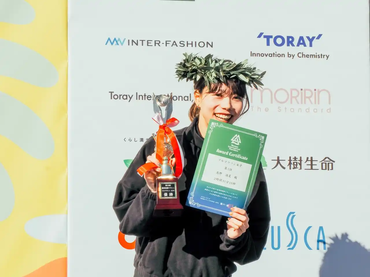 | フルマラソン女子では、高野 温菜選手がレース全体を巧みに掌握し、冷静さと推進力を併せ持つ走りで快進撃を披露。従来の歴代記録「2時間44分53秒」を3分更新し、2時間41分01秒という圧倒的なタイムでゴールテープを切りました。 | |||||||||||||