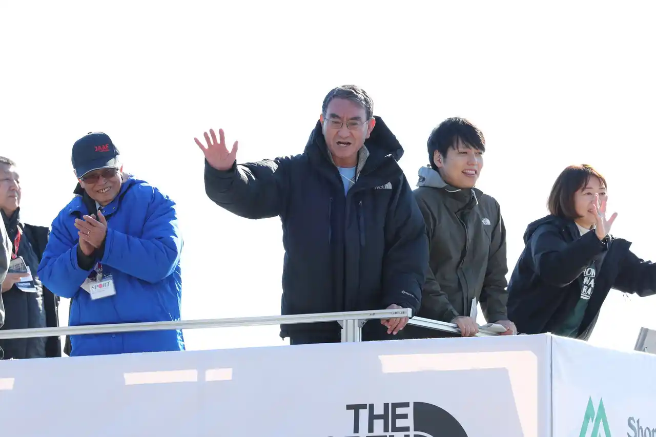 | ― 河野太郎大会名誉会長が、ランナーにエールを送る ― | |||||||||||||
