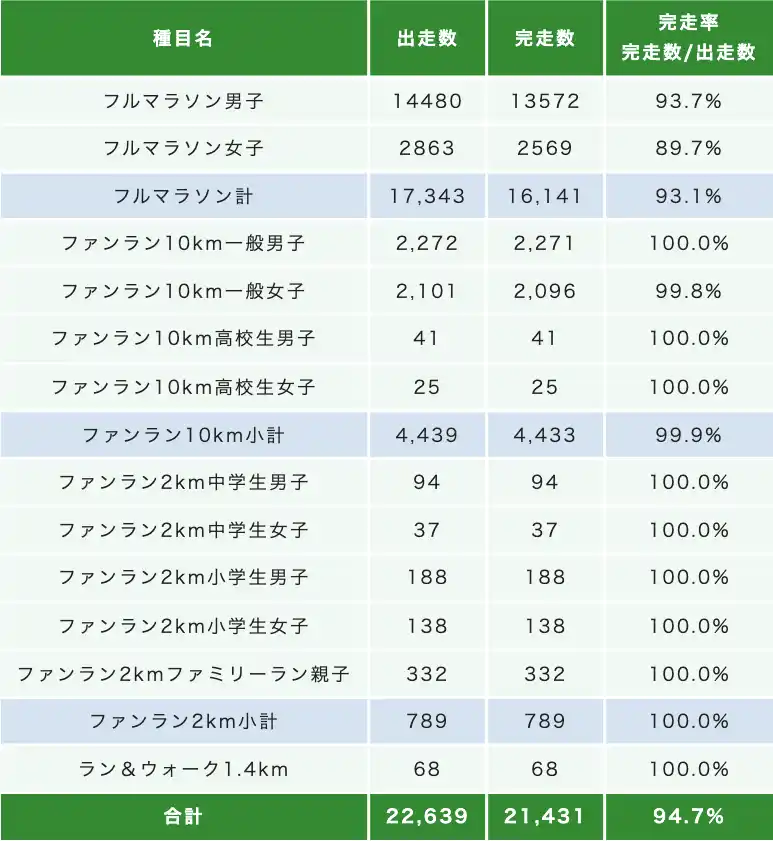 | 出走率、完走率 | |||||||||||||