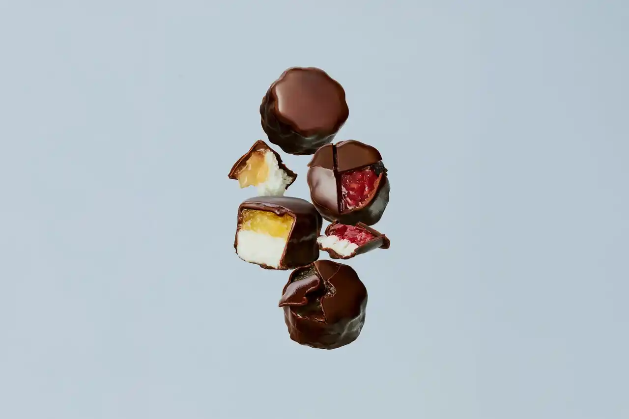 メゾンカカオから、新たな驚き体験を。旅するメゾンの果実を、空気のように軽やかな生マシュマロに。ふんわりとろけて、やさしくのびる食感を、薄いビターチョコがそっと包みます。空気のように軽やかで、儚く溶けゆく、それでいて、カカオの香りと余韻は確かに残る。 |