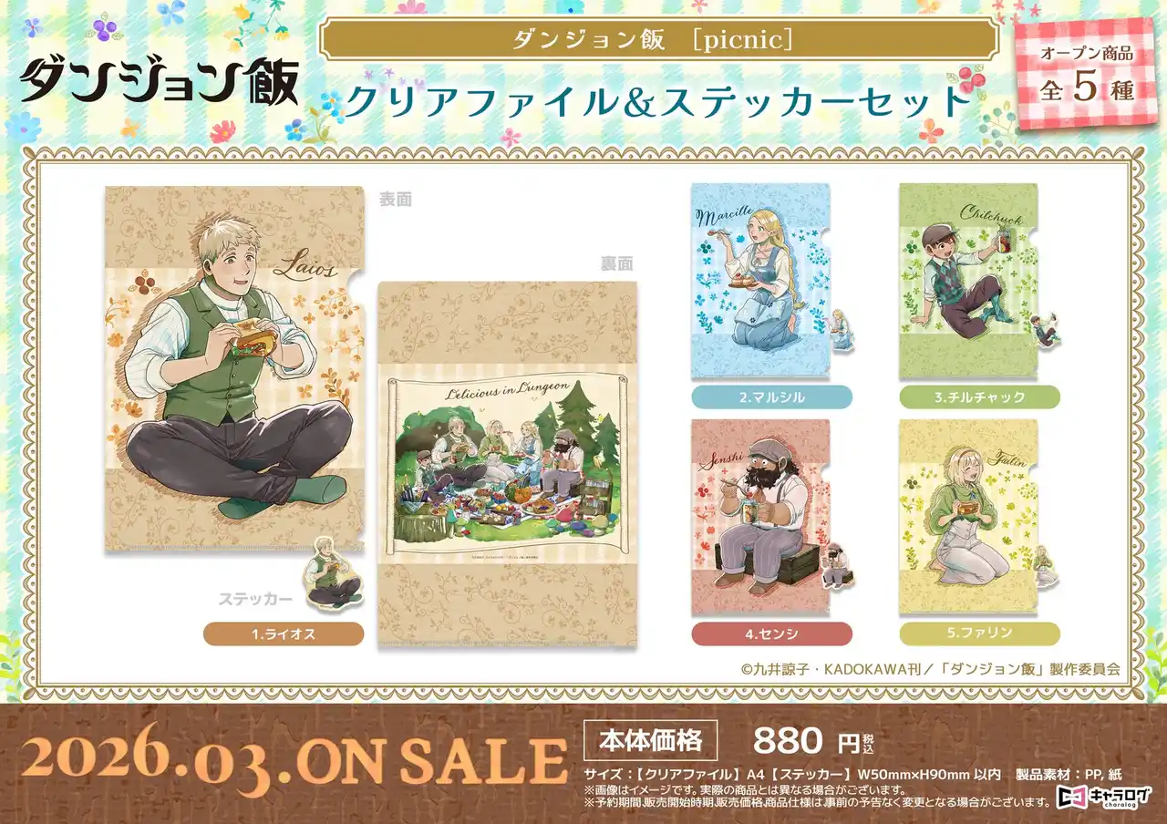 株式会社ディ・テクノ(本社:東京都港区 代表取締役社長:市原 高明)は、2025年12月8日(月)12:00よりダンジョン飯[Picnic]オリジナルグッズの予約受付を開始いたしました。 |