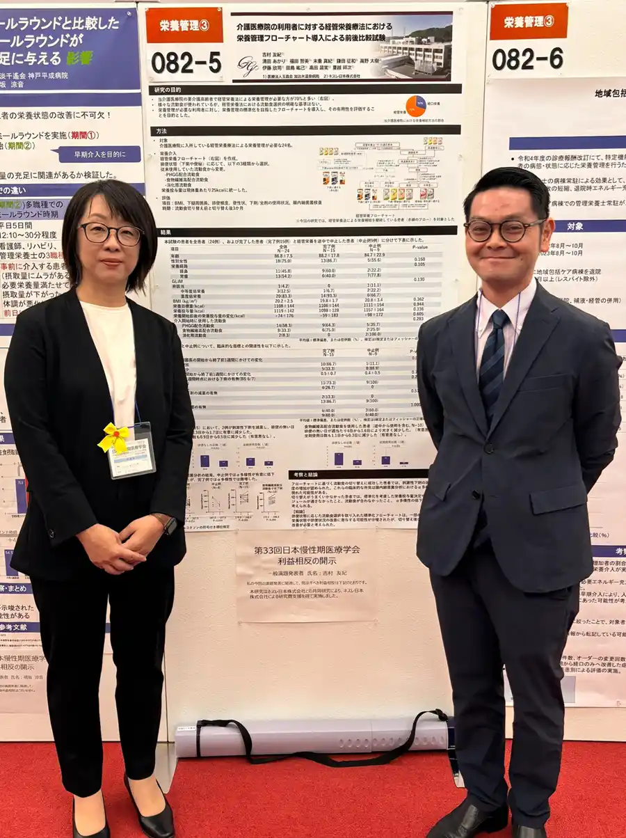 | 2025年11月6日と7日、大阪国際会議場で開催された『第33回日本慢性期医療学会』にて、ネスレ日本株式会社 ネスレ ヘルスサイエンス カンパニー(本社:兵庫県神戸市、カンパニープレジデント:中島昭広)が製造販売する流動食に関する研究成果が発表されました。 | ||||||||