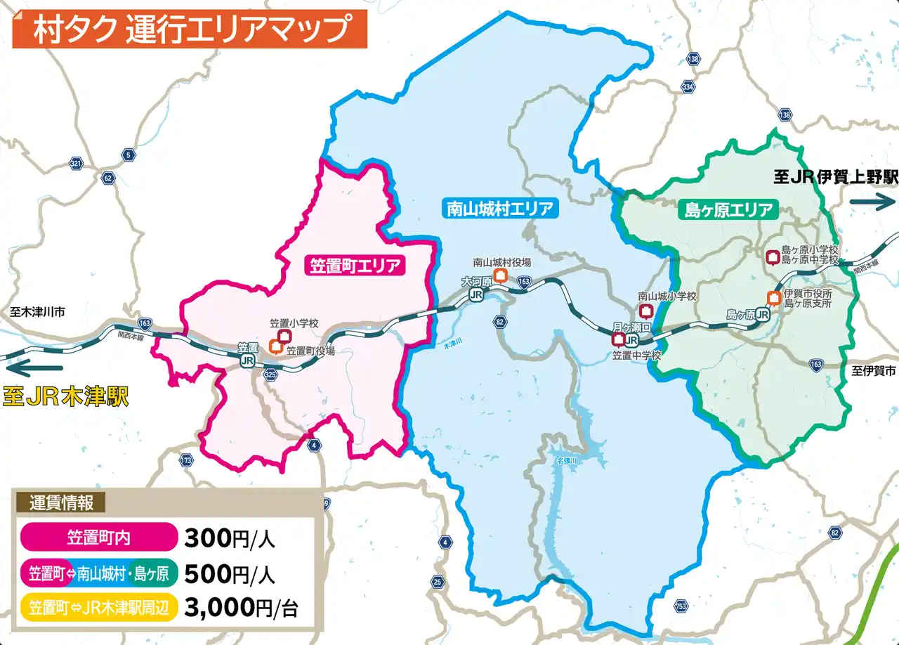 【運行エリア】 京都府笠置町全域、笠置町⇔南山城村・島ヶ原・木津駅 |