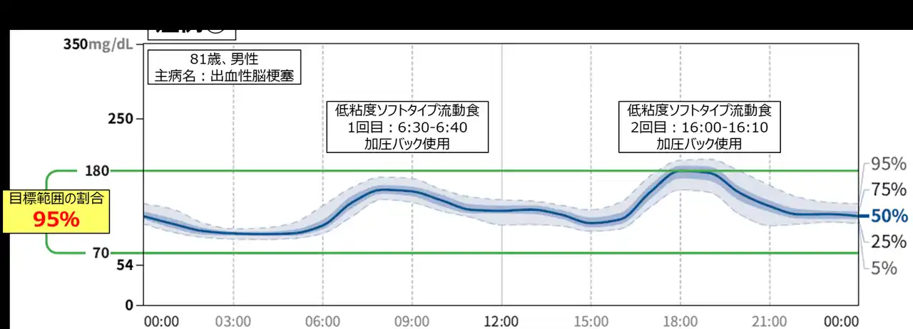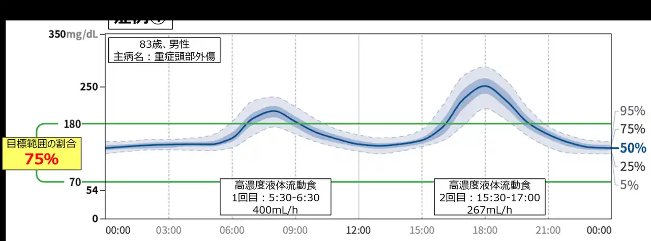| 当院による先行研究で、経腸栄養2回投与法は非糖尿病患者のQOL向上や医療従事者の業務負担軽減に寄与することが示されていましたが、糖尿病患者における経腸栄養2回投与法の安全性・有用性に関する報告はなかったため、今回、「経腸栄養600kcal/バッグによる2回投与法」の血糖変動およびHbA1cへの影響を評価しました。 | ||||||||||||