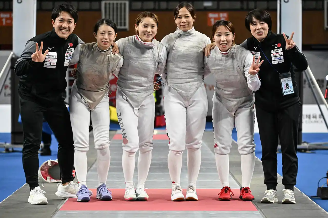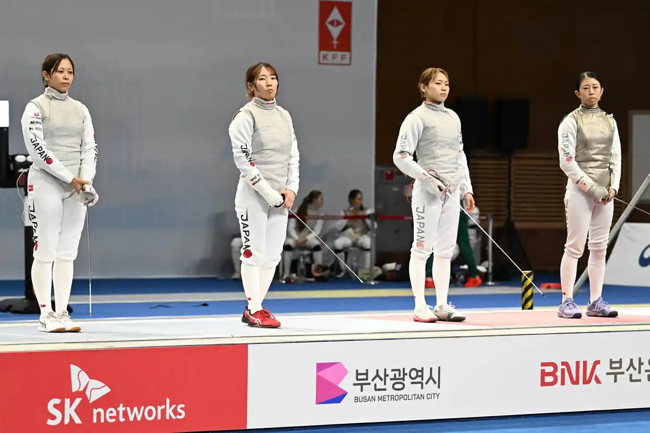 現地時間2025年12月7日(日)に韓国(釜山)で開催された、フェンシングワールドカップにて、女子フルーレ日本代表チーム(上野優佳/エア・ウォーター株式会社、東 晟良/共同カイテック株式会社、辻すみれ/株式会社 大垣共立銀行、菊池小巻/セガミーホールディングス株式会社)が銅メダルを獲得致しました!
