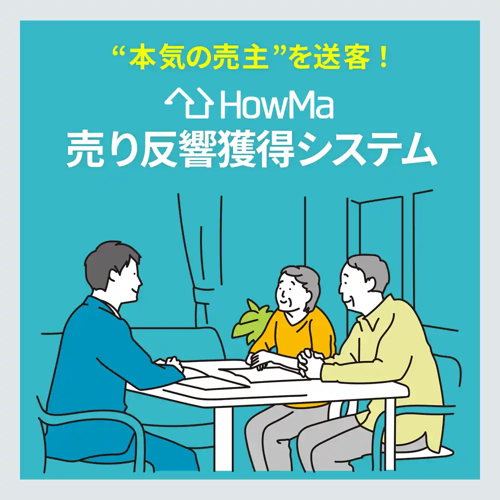 「売却検討者向けAI査定」を提供しているHowMaの登録会員を、不動産会社様に送客するシステムです。 「価格が知りたいだけ」という、売却から遠い客はHowMaのAI査定で出る価格で満足してストップします。不動産会社様へお届けするのは、本当に売りたいという高品質な反響だけです。 |