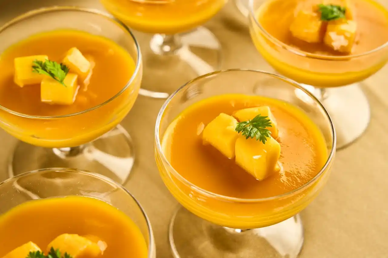 ・マンゴープリン(香亡布丁):果実味豊かで濃厚なマンゴーの味わいがくせになる人気スイーツ。 |