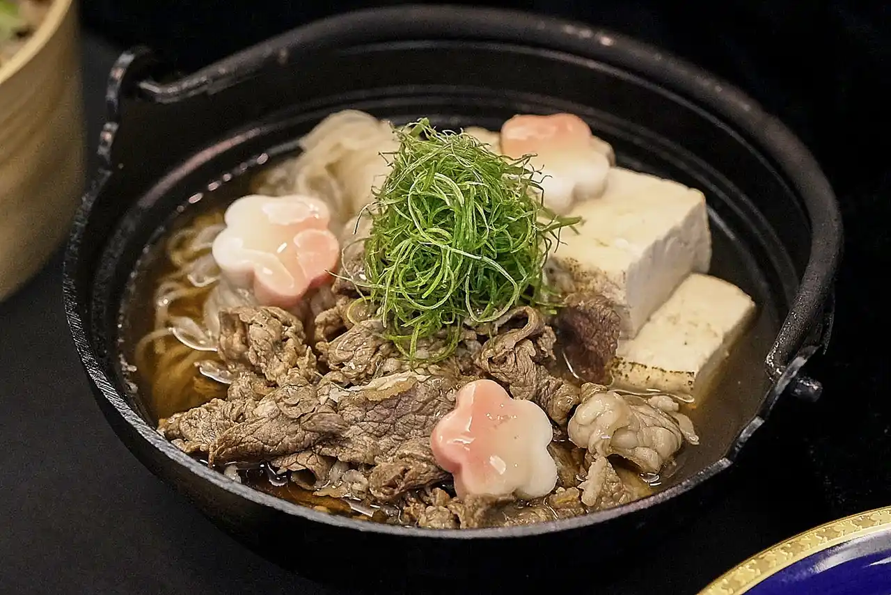 ・華頂のすき焼き風煮込み:「昔づくり松野醤油」で作った自家製割り下に、昆布と鰹ぶしでとった白だしを合わせた「華頂オリジナルベース割り下」。和牛の切り落とし、焼き豆腐を煮込み、生麩、九条葱とともに提供。 |