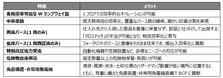 | 本施設は「Landport」シリーズ史上最大の延床面積となる物流施設であり、主な特徴は以下の通りです。 | ||||