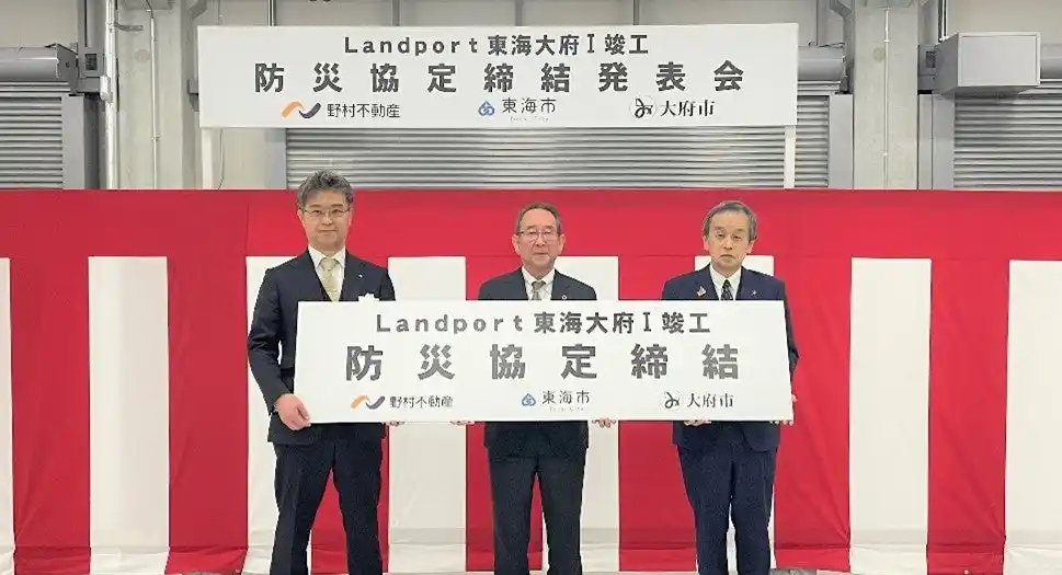 | 当社は、物流業界が抱える人手不足などの課題解決に向け、「地域におけるコミュニティ活動の促進による雇用創出や物流施設の魅力向上に寄与する取り組み」に注力することを掲げております。本施設においてもその一環として、2025年12月に東海市・大府市と今後災害が起きた際、本施設および今後建設予定の「Landport東海大府II」において、被災地に人や物資を送る拠点である受援施設としての協力をはじめ、防災備蓄品の保管や車中泊避難場所※3としての利用などに向け、「防災協定」を締結いたしました。その他にも、今後東海市・大府市・当社の3者で防災活動を中心とする地域連携強化を推進してまいります。 | ||||