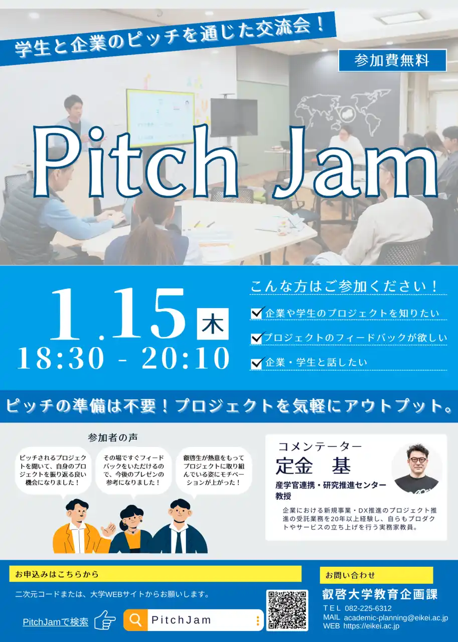 | 2026年1月15日(木)は、学生や企業の方々が自分のプロジェクトをカジュアルに紹介し合うイベント「Pitch Jam」を開催します。 | |||||||||||