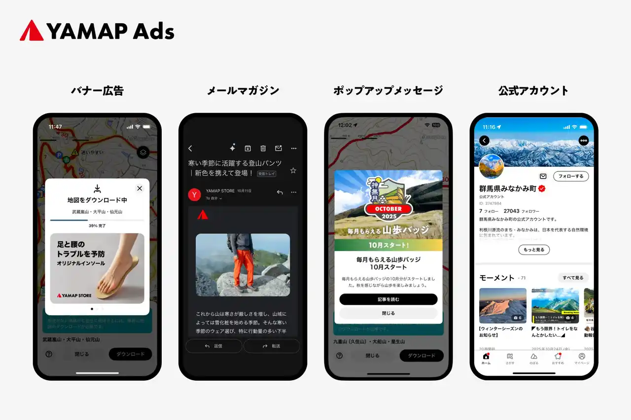 広告配信サービス「YAMAP Ads(β版)」の提供を開始 (2025年4月) |