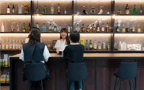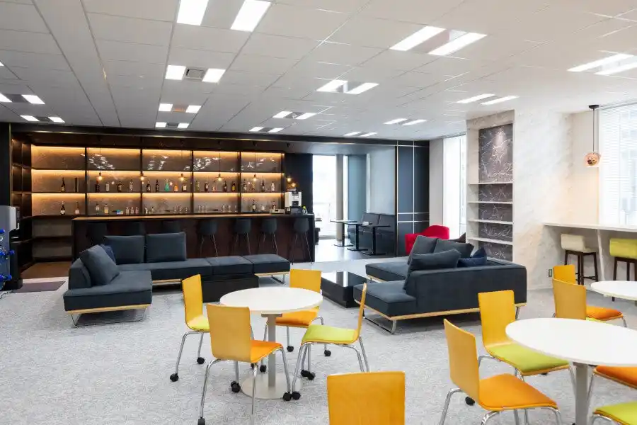 昼間は打ち合わせやランチを通じた社員交流を促進し 、夜間はバーカウンターでリラックスしながら交流を深めることが可能です 。 |