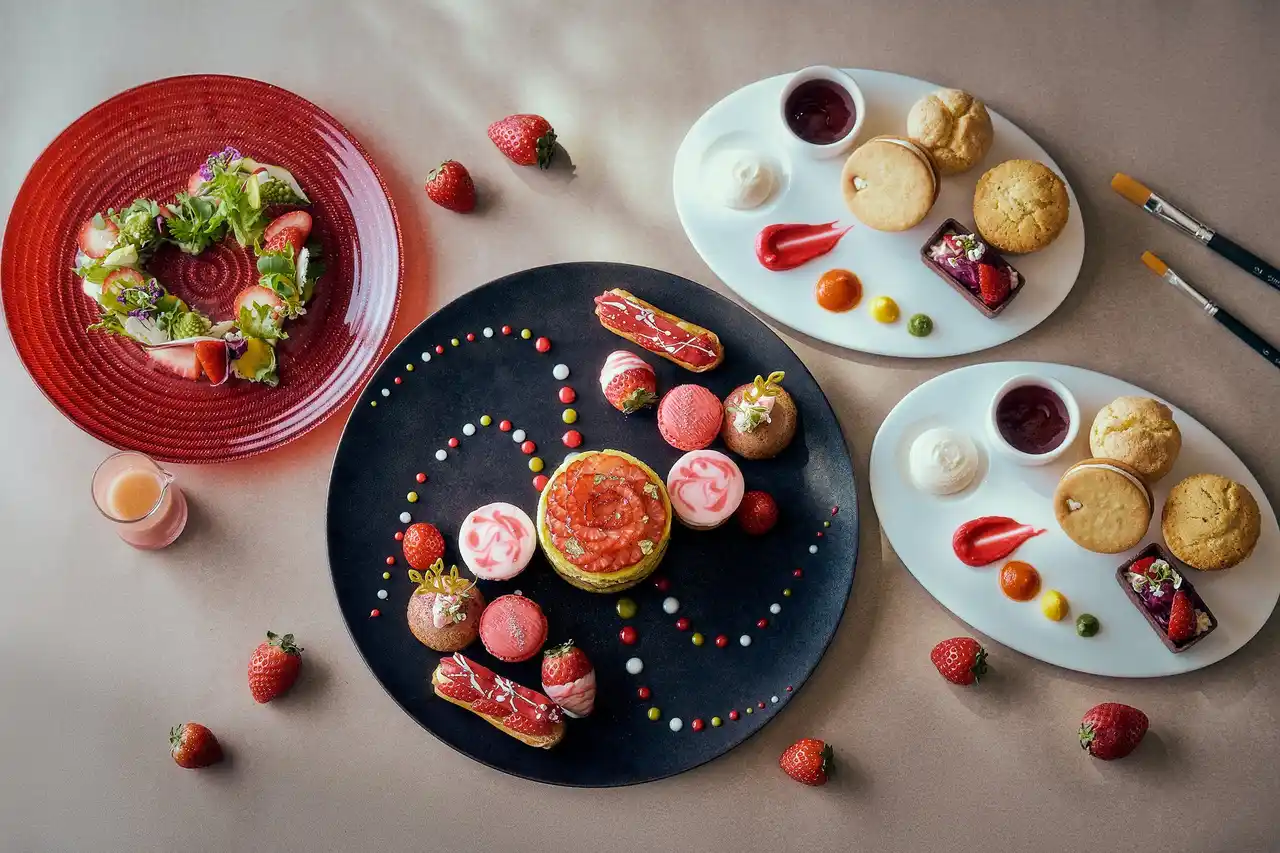 毎年人気のストロベリーアフタヌーンティー。今回は”パレット”をテーマに、キャンバスに描くアートのようにストロベリーのスイーツやセイボリーが並びます。バレンタインデーやホワイトデーの期間にも楽しめる当アフタヌーンティーは、大切な人や恋人、ご家族への想いや感謝を伝えるメニューとしてもおすすめです。 |
