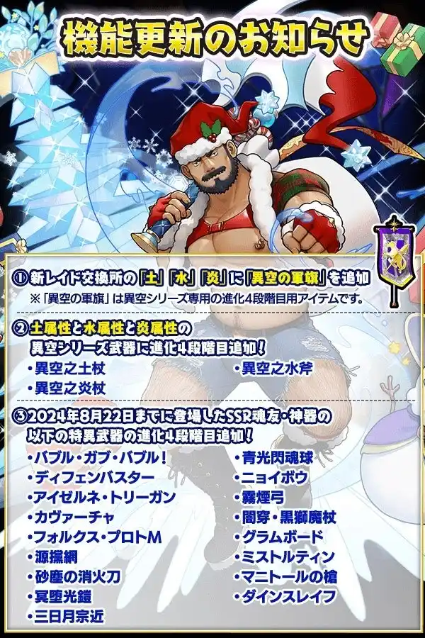 2024年8月22日までに登場したSSR魂友・神器の特異武器の進化4段階目を追加! |