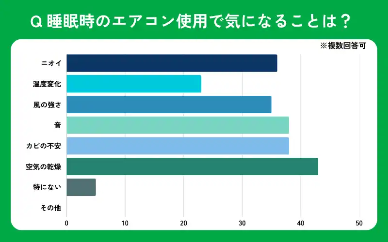 | 睡眠時のエアコン使用で気になることは何ですか?(複数選択可能) | ||||||||||||||||||