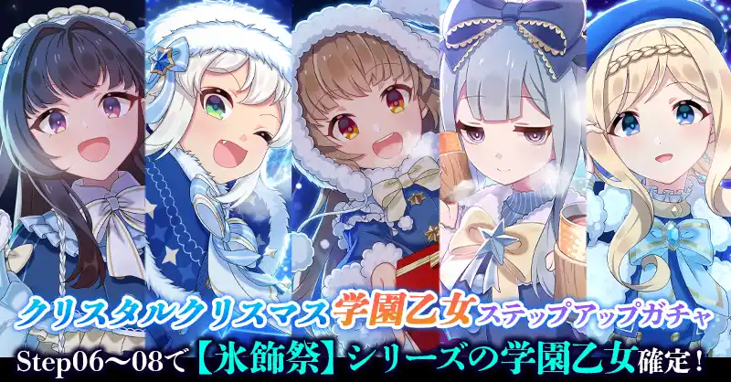 クリスマスイベントの開催にあわせ「クリスタルクリスマス学園乙女ステップアップガチャ」の販売を開始いたしました。 |