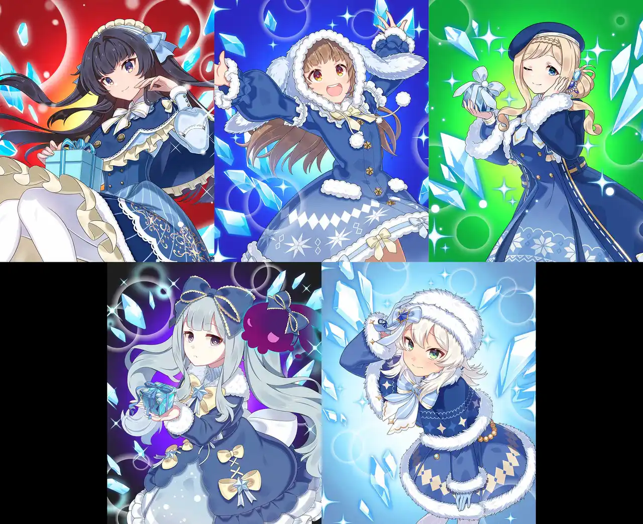 クリスマス衣装を着た学園乙女達が描かれた、【氷飾祭】シリーズの使い魔が登場します。 |