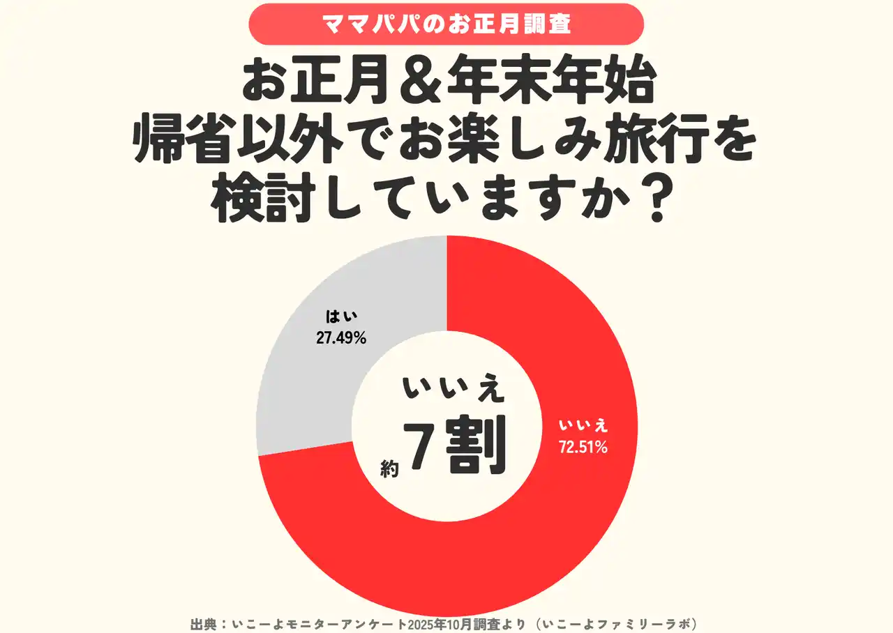 ▶ママパパ469人の声!帰省で衝撃 義実家のびっくりお正月&年末年始(https://iko-yo.net/articles/20982) ▶年末帰省は半日が常識!?「無理しないお正月」帰省はする約6割(https://iko-yo.net/articles/20976) |