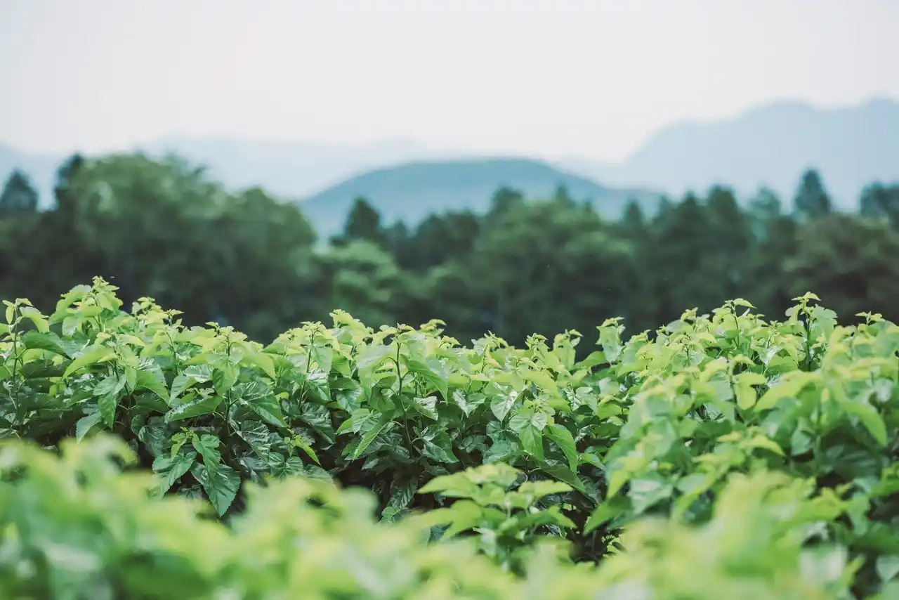「やまがシルク」を紡ぐカイコが食べるのは、熊本県・山鹿市で独自に栽培している無農薬の桑葉で作った人工飼料。そのため、標高600メートルの山頂に農地面積約25ヘクタールの巨大桑園「天空桑園」を造成し、およそ8万本の桑を無農薬栽培しています。カイコは農薬の影響を非常に強く受けますが、平地から桑園まで遠く離れていることで、ほとんど農薬の影響を受けずにカイコにやさしい オーガニックな桑の葉を育てることが可能です。また、「天空桑園」は長年耕作放棄地として荒れ果てていた農地を甦らせて再生しており、山鹿市の遊休地・耕作放棄地の解消にも貢献しています。 |