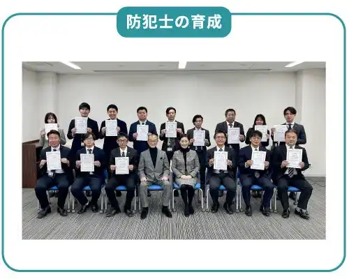 一般社団法人日本防犯学校の協力のもと、防犯の知識を持つ防犯士を育成。防犯を学んだ防犯士の知見を活かし「本当に犯罪を防ぐことができる」セキュリティ製品の開発を進めています。 |
