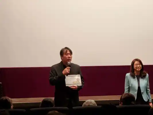 会場には、国際ジャーナリストであり映画監督でもある樽谷大助も登壇。「映画監督として、この名誉ある偉業を心から祝福したい」と述べ、続編製作への期待を寄せると、観客席からは大きな拍手が送られた。最後は会場一体となっての万歳三唱で、井上監督の凱旋を祝福した。