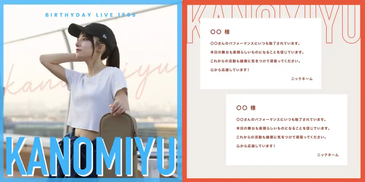 【#推しメッセ(R)︎実施報告】かのうみゆ Birthday LIVE『1999』でファンの応援メッセージが届くサービスを展開! |